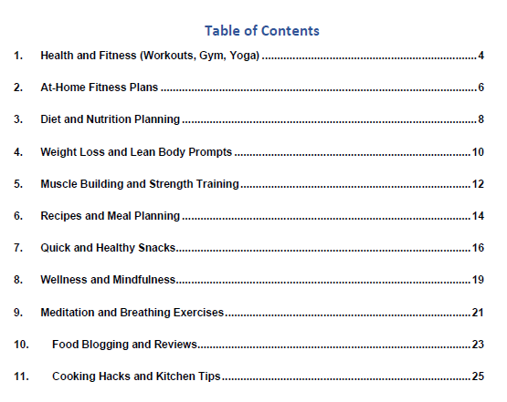 - 198 In-Depth Prompts: Covering workouts, weight loss, lean muscle, diet planning, healthy snacks, recipes, mindfulness, and more.